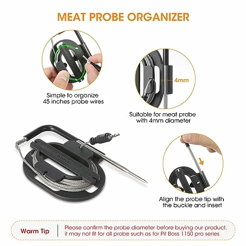 - Widely Use: AIEVE BBQ thermometer probe cord holder for traeger meat probe is suitable for various activities, including cooking, barbecuing, camping etc. 100% Quality guarantee, please contact us freely if you have any question about our products.