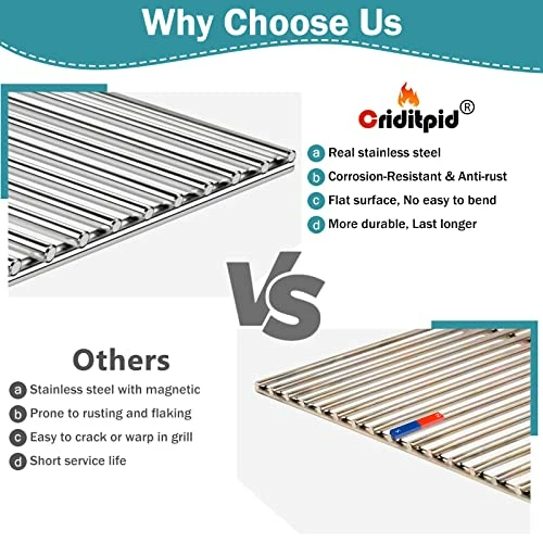 - ćHigh Performancećā Easy to Clean – The Nexgrill 720-0830h replacement parts are made of stainless steel, smooth surface, non-stick, easy to clean and maintain. Using a grill brush with soap and water to clean. ā Built To Last – Do not chip or rust out like the enameled bars, more sturdy and durable and leave beautiful grill marks on the food. ā Not Easy Rusting – Strong corrosion resistant & rust resistance with high quality stainless steel.