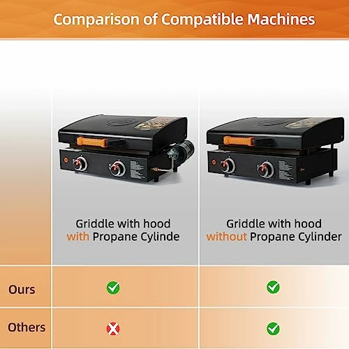 - COMPATIBILITY–The grill cover fits for Blackstone 22 Tabletop Griddle with hood. It is also suitable for use with both propane cylinders or propane tanks. Please Note: It is advisable to check the grill model you own before purchasing.