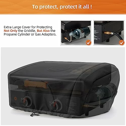 - FULL PROTECTION–To protect, protect it all! Introducing Noelife griddle cover for protecting not only the griddle but also the propane cylinder and gas connector. This grill cover for Blakcstone 22 inch tabletop griddle could help you keep your griddle, baking pan, propane cylinder, and gas connector stay clean and dry. Keep them free from direct exposure to the outdoors is safer and can also help extend the service life of your griddle.