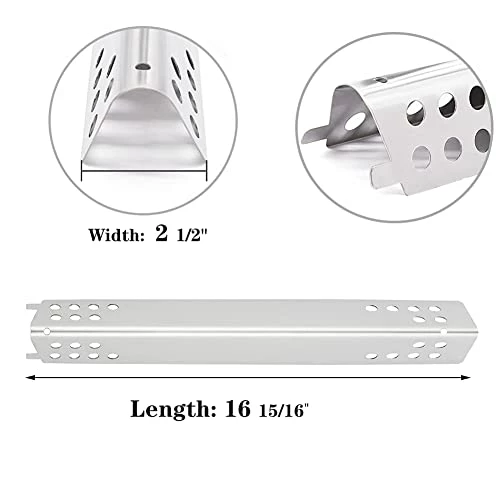- âăDimensionsăGrill Burner Dimensions: 17 3/4″ x 3/5″; Grill Burner Material: Stainless Steel; Original parts number: G470-5200-W1, G321-4C00-W1â Heat Plates Dimensions: 16 15/16″ X 2 1/12″ ; Heat Shield Material: Stainless Steel; Original parts number: G470-0004-W1, G470-0004-W1A â Carry Over tube: Adjust from 5.5 to 8.5 inch, Material: Stainless Steel